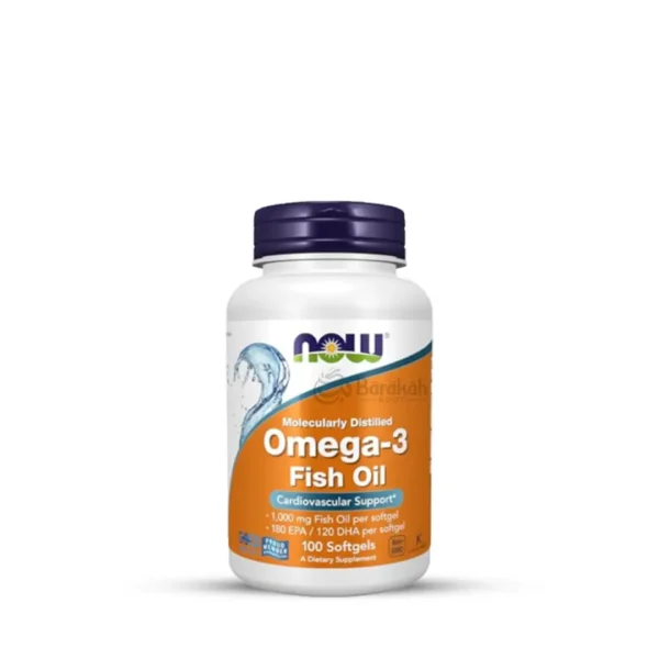 NOW Omega-3 Fish Oil softgels deliver essential EPA and DHA to support heart and cardiovascular health. Made with molecularly distilled fish oil for purity and safety—ideal for daily wellness.